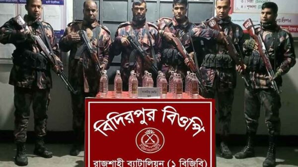 রাজশাহীতে ২৮ বোতল মদ উদ্ধার মো: গোলাম কিবরিয়া রাজশাহী জেলা প্রতিনিধি ১০ জানুয়ারি ২০২৬ তারিখ আনুমানিক ০৪ টা মিনিটে রাজশাহী ব্যাটালিয়ন (১ বিজিবি) এর অধীনস্থ বিদিরপুর বিওপি’র আভিযানিক দল নিজস্ব