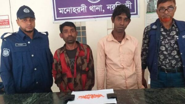 পুলিশের অভিযানে ১২০ পিছ ইয়াবা উদ্ধার গ্রেপ্তার ২ মাদক কারবারি। মোঃ আঃ কুদ্দুস মনোহরদী (নরসিংদী) প্রতিনিধি নরসিংদীর মনোহরদীতে পুলিশের বিশেষ অভিযানে ১২০ পিস ইয়াবা ট্যাবলেটসহ দুই মাদক কারবারিকে গ্রেপ্তার করা