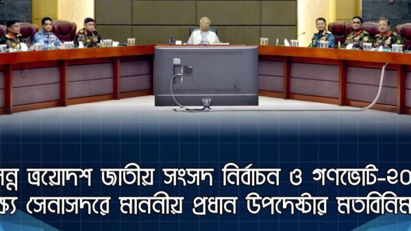 আসন্ন ত্রয়োদশ জাতীয় সংসদ নির্বাচন ও গণভোট–২০২৬ উপলক্ষ্যে সেনাসদরে মাননীয় প্রধান উপদেষ্টার মতবিনিময় সভা আজ সেনাসদরে আসন্ন ত্রয়োদশ জাতীয় সংসদ নির্বাচন ও গণভোট–২০২৬ উপলক্ষ্যে মাননীয় প্রধান উপদেষ্টা প্রফেসর ড. মুহাম্মদ